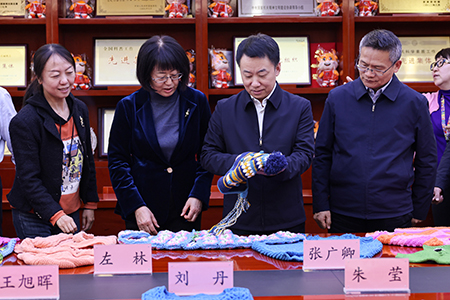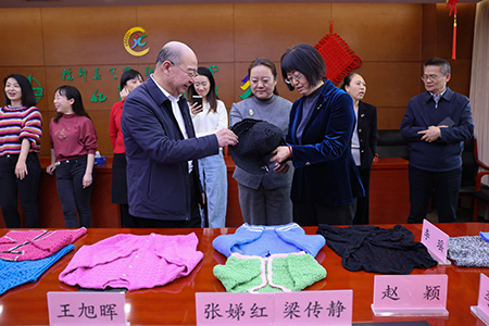 本网讯 2024年2月20日,广校体协妇委会组织举办“恒爱行动——百万家庭亲情一线牵”爱心编织品展示活动,党委书记、秘书长刘明国和全体领导班子成员、妇委会成员以及单位女职工代表参加。刘明国对活动给予充分肯定,强调要把这项公益活动坚持下去,引导广大干部职工弘扬优良家风、积极奉献爱心,为增进民族感情、服务乡村振兴贡献力量。